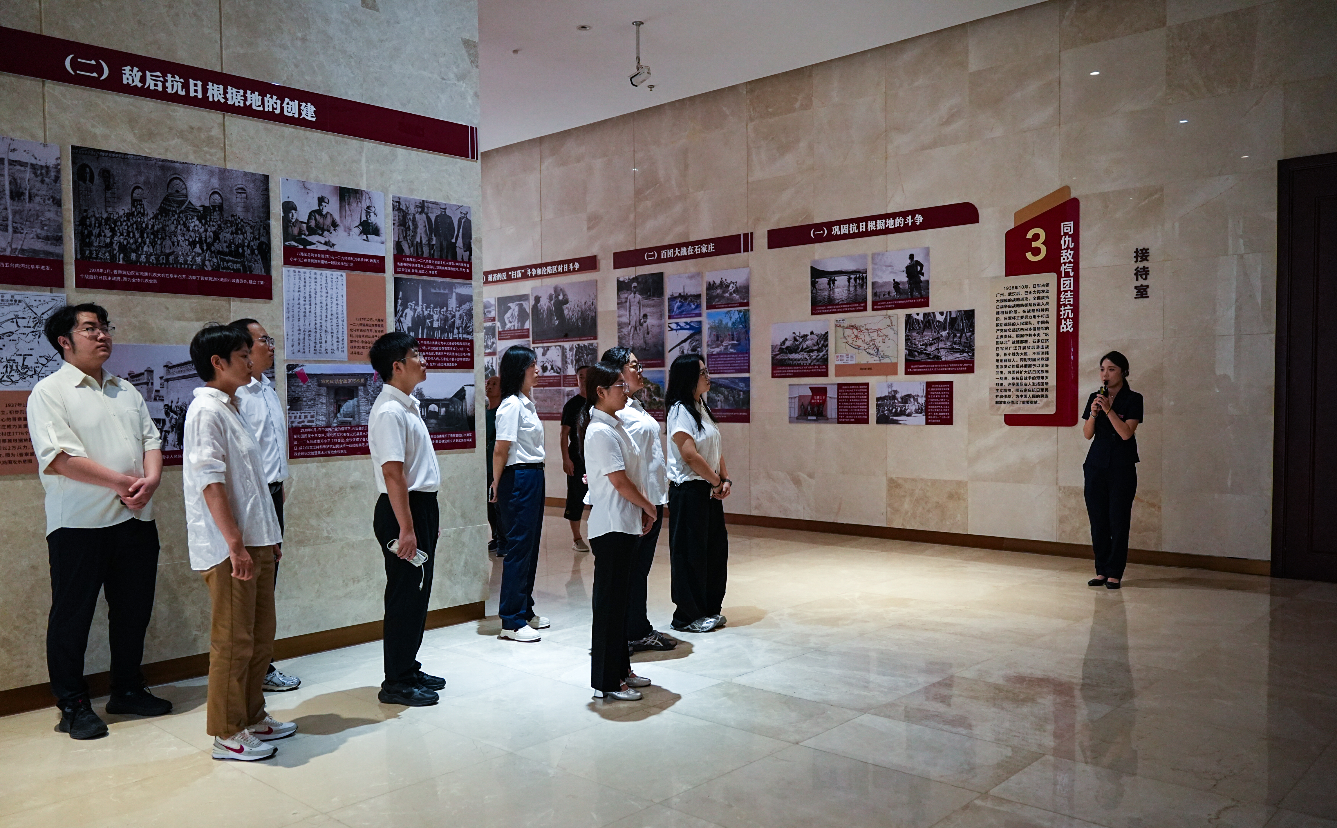 活动现场庄重热烈,团员青年们集体参观了“浴血抗战 滹沱壮歌”抗战历史展览。在讲解员的引导下,依次观看“开展抗日救亡运动”“创建抗日根据地”等五个主题单元,通过150余幅历史图片和1.3万余字文献资料,深入了解了石家庄军民十四年抗战的英勇历程。大家驻足凝视史料,认真聆听讲解,在烽火岁月的印记中,深切感受先烈们为国奉献、团结抗争的精神力量,纷纷感慨“透过珍贵史料,仿佛重回风雨如磐的抗战年代,先烈精神直击人心”。