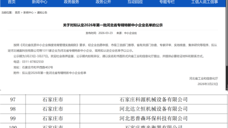 3月27日,河北省工业和信息化厅《关于对拟认定2026年第一批河北省专精特新中小企业名单的公示》结束,冀翔通公司顺利通过河北省专精特新中小企业认定。[详细]